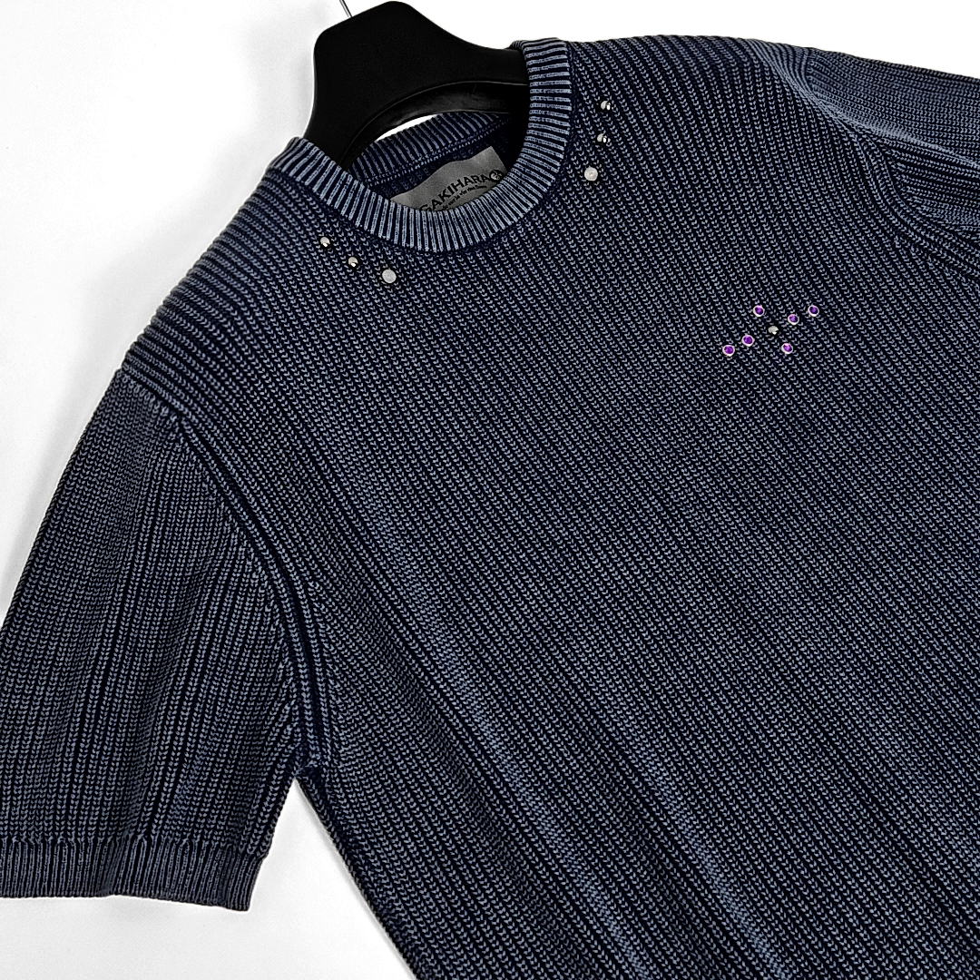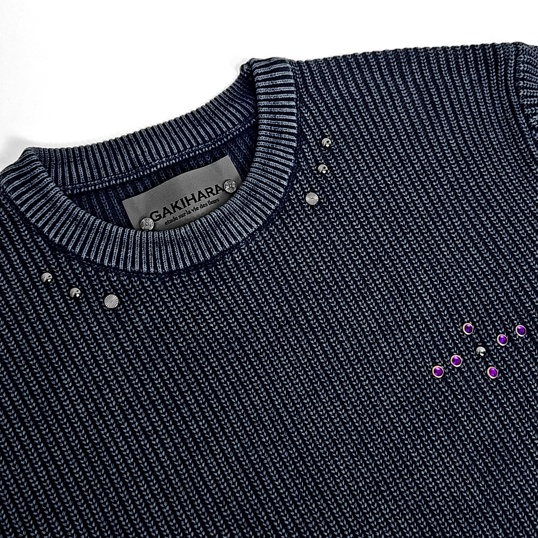 Sullra western rivet dying washed round knit (smoke blue)