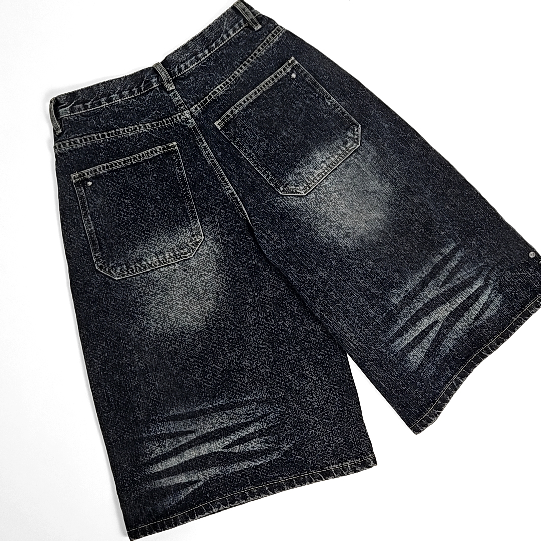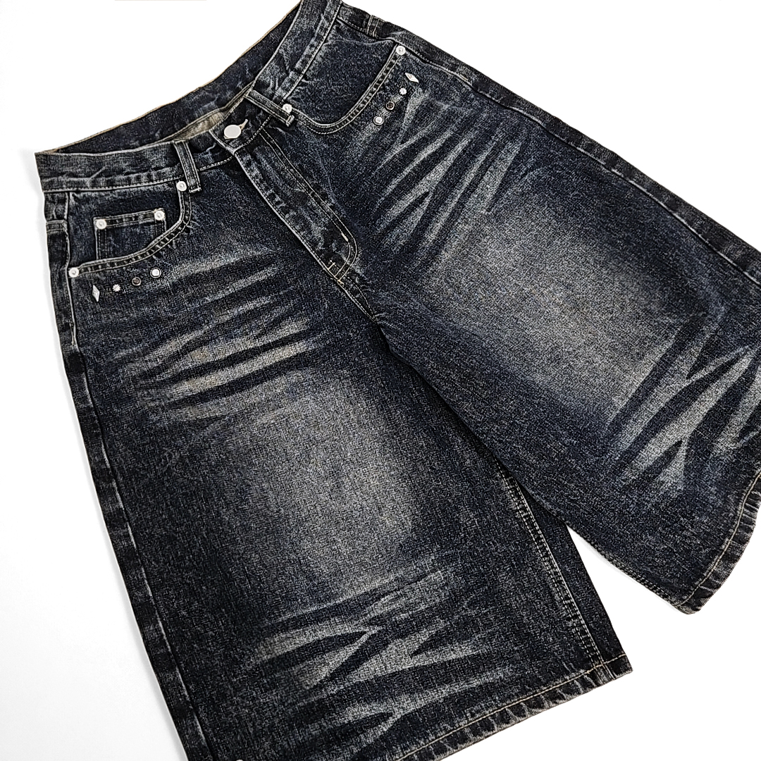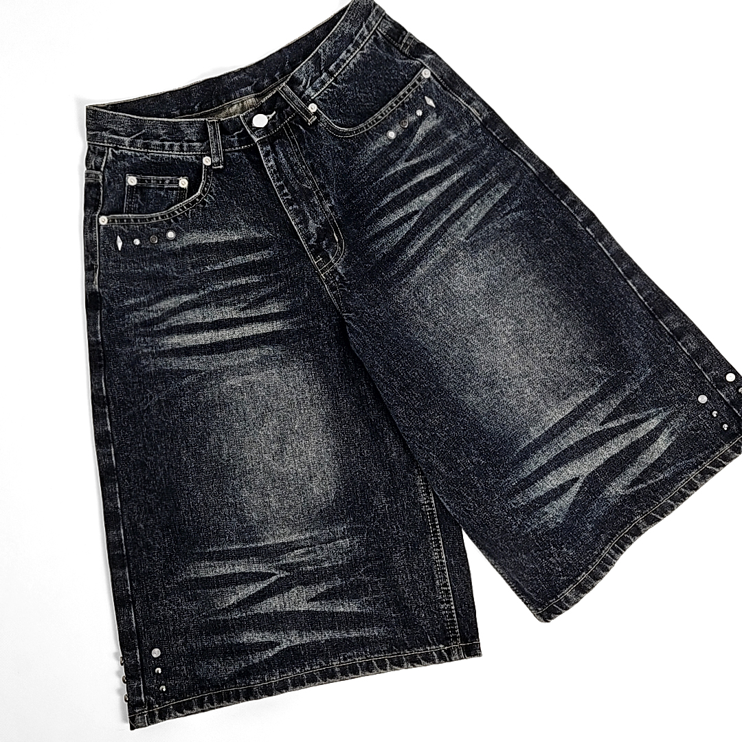 Yoruika western rivet wide denim shorts (washed deep blue)