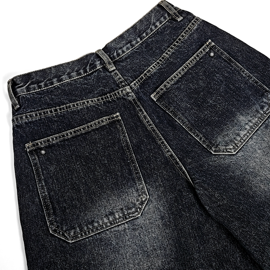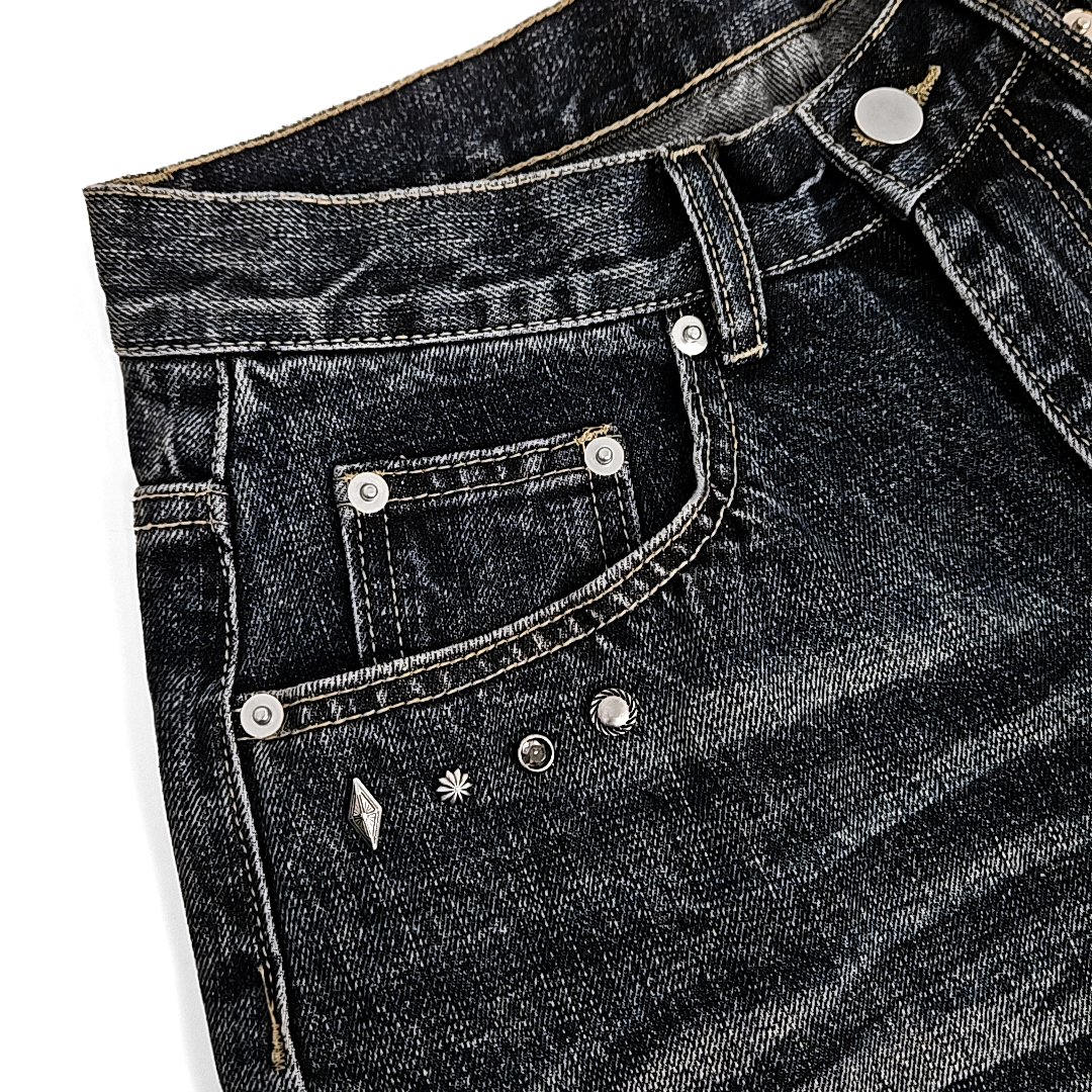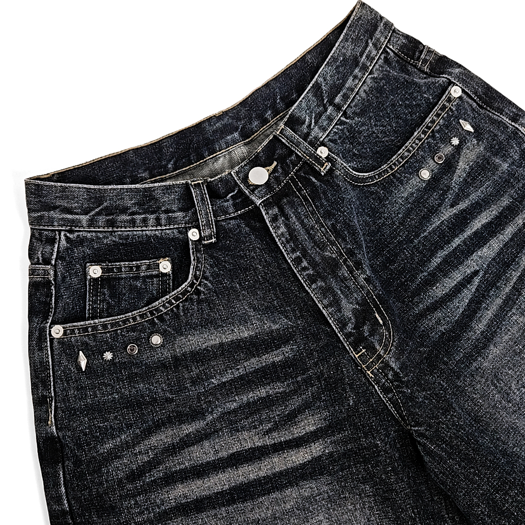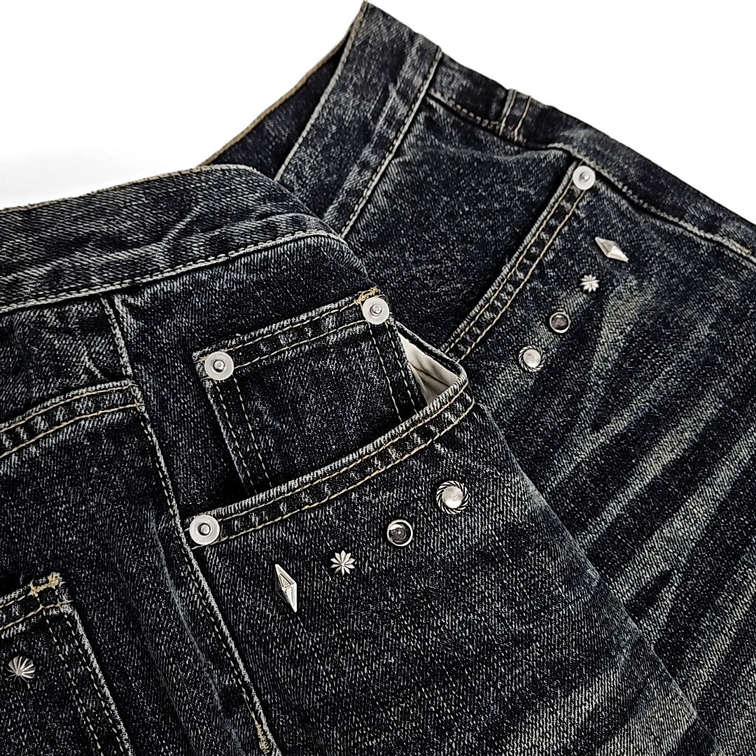 Yoruika western rivet wide denim shorts (washed deep blue)