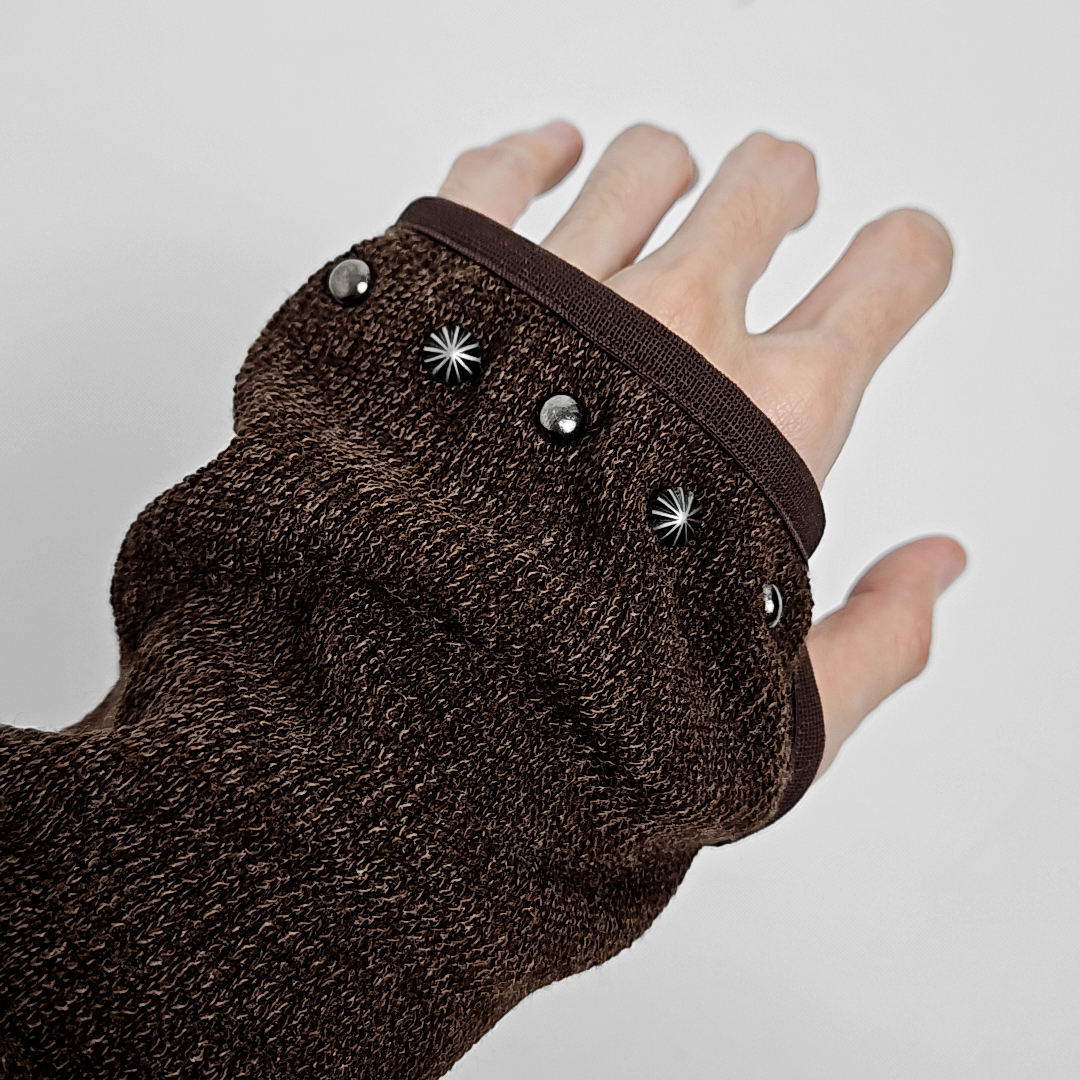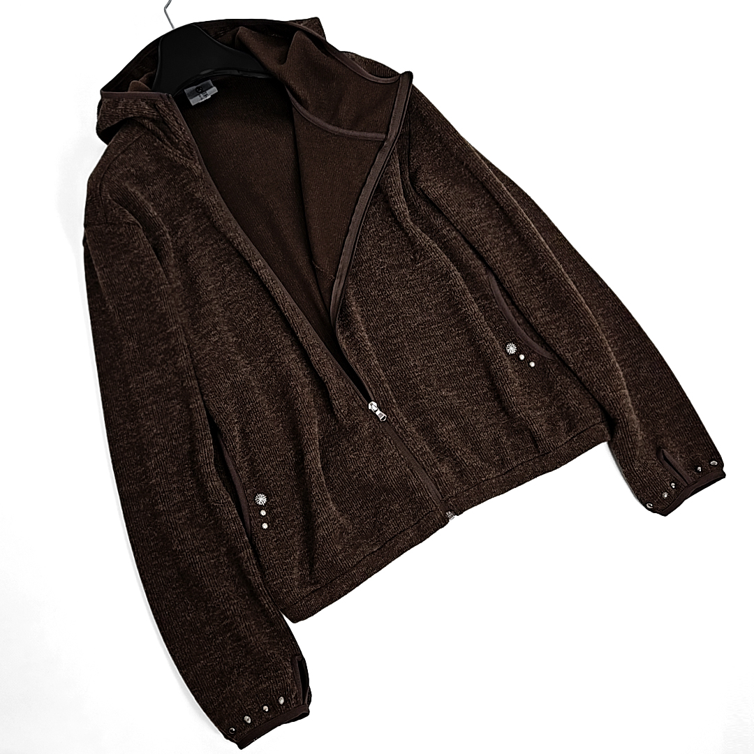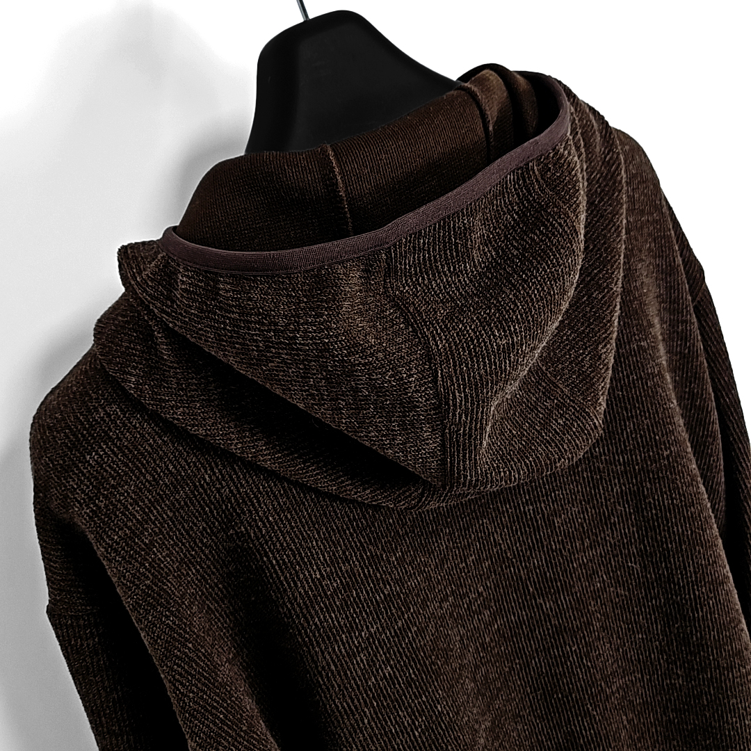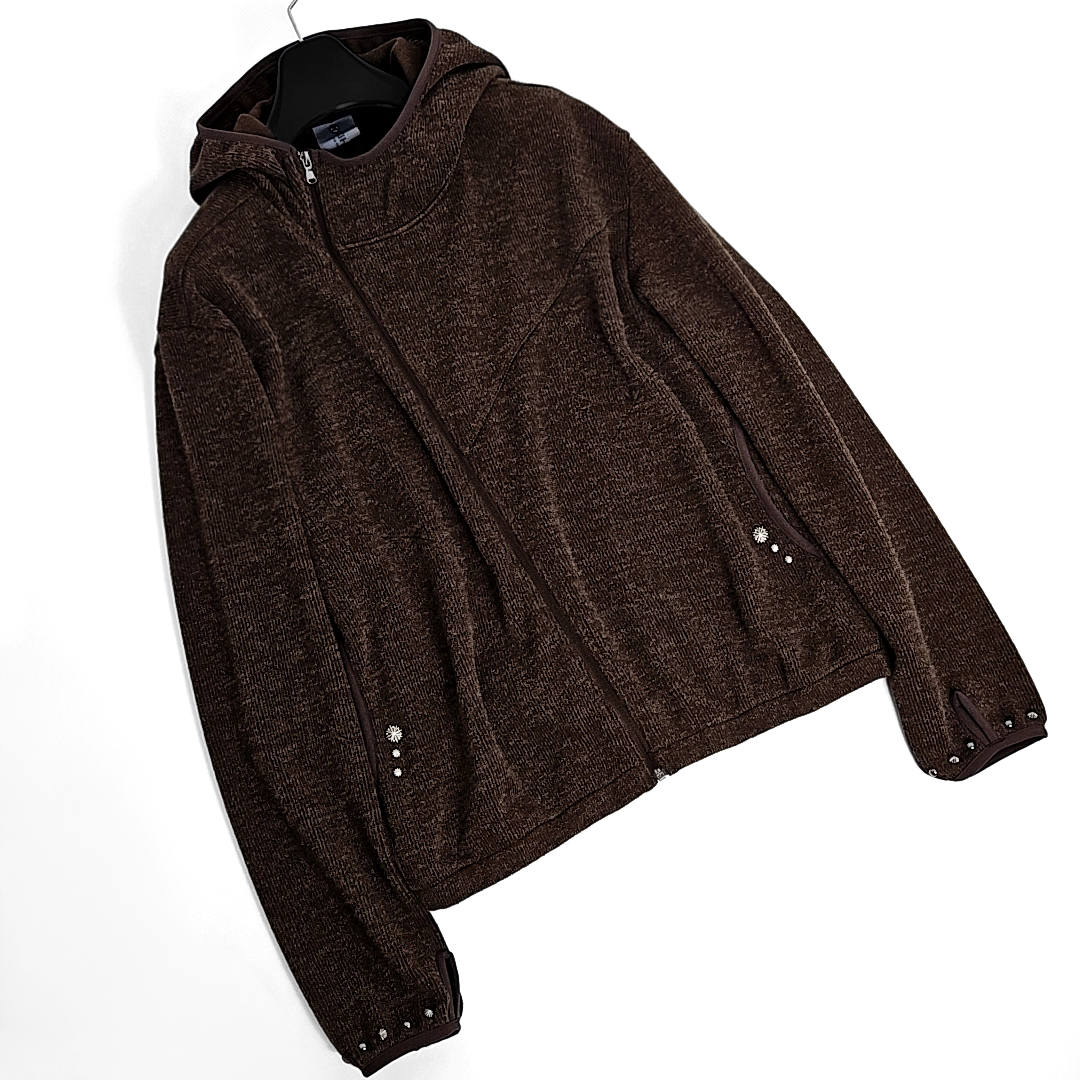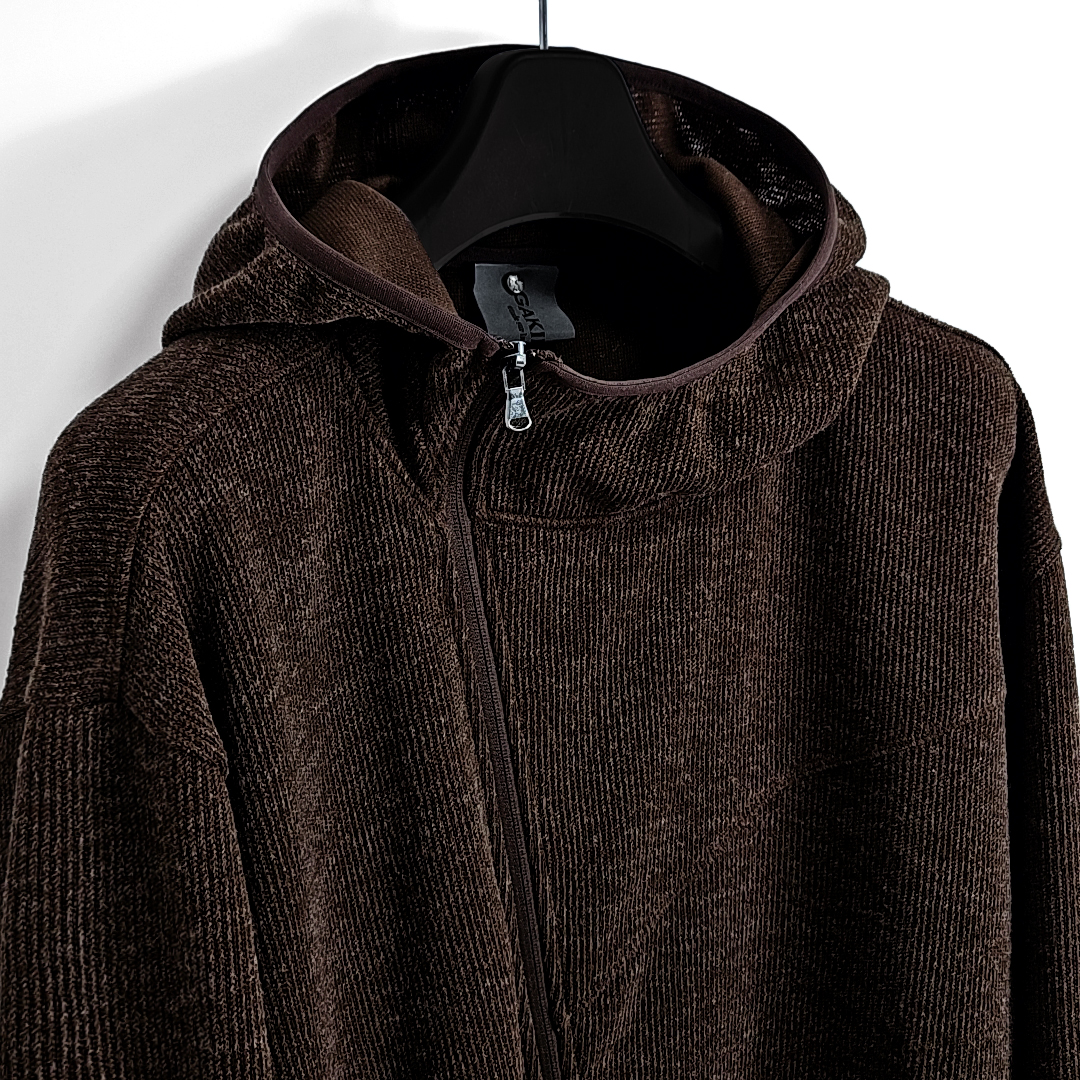 Dries western rivet finger-hole knit hoodie zipup (brown)