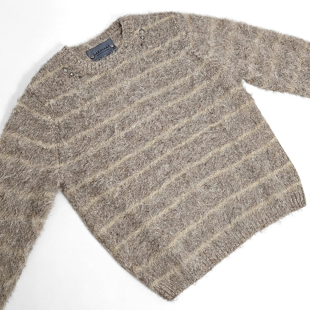 Yosu western rivet hairy stripe knit (lon beige)SALE