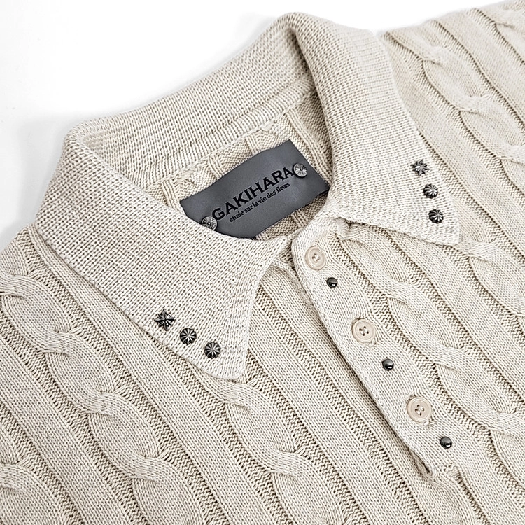 Kyoska:ll western washed cable collar knit (light beige)SALE