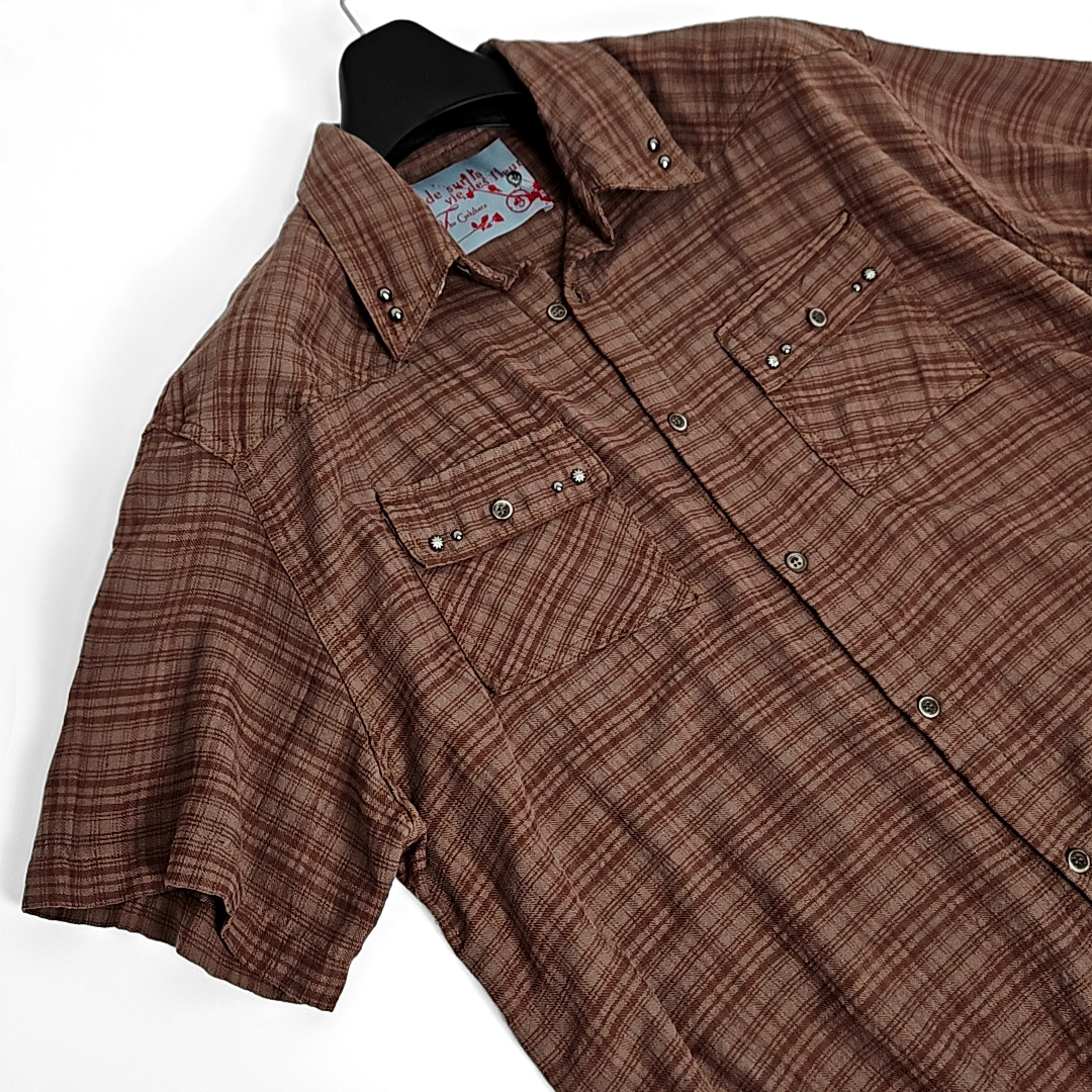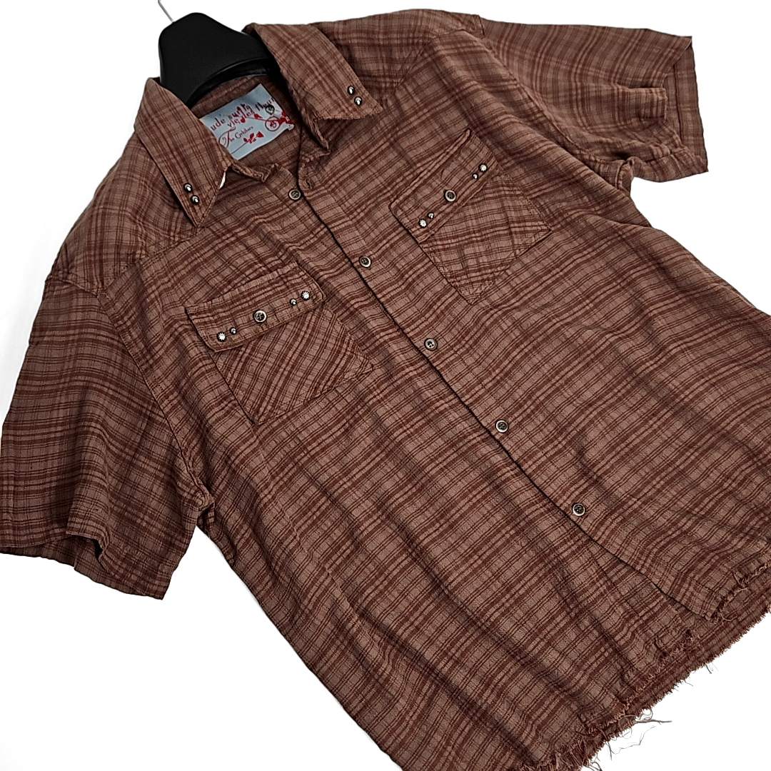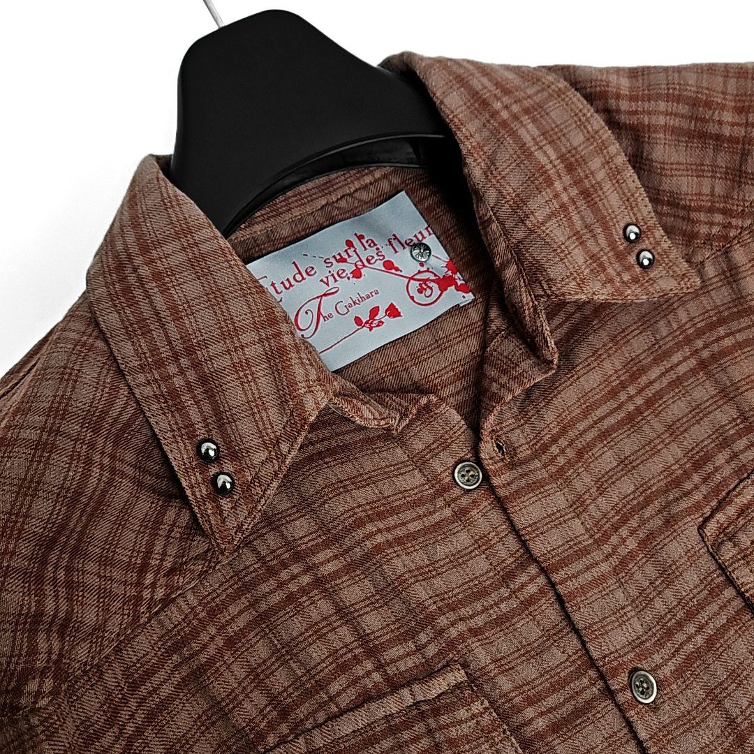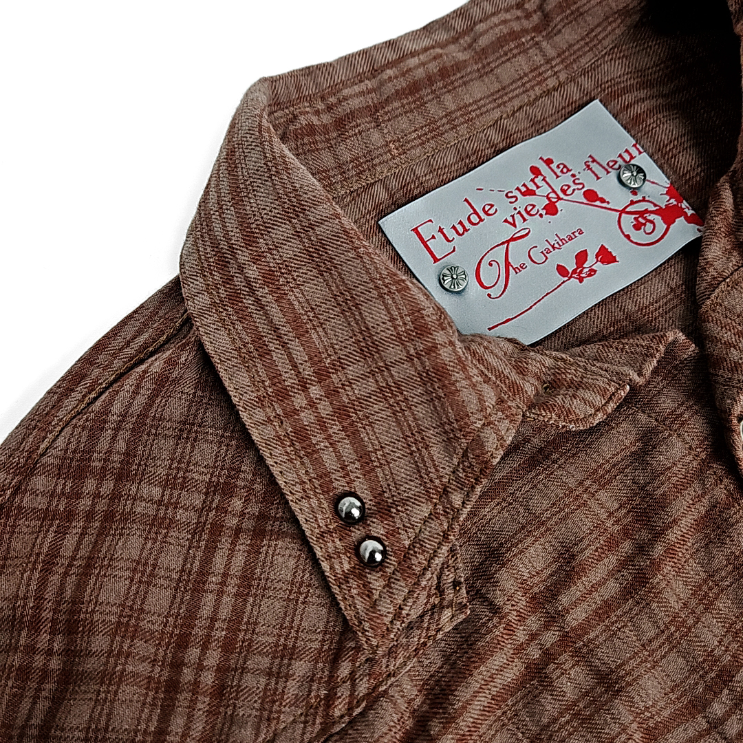 Kariya western vintage cut check half shirts (red brown)SALE