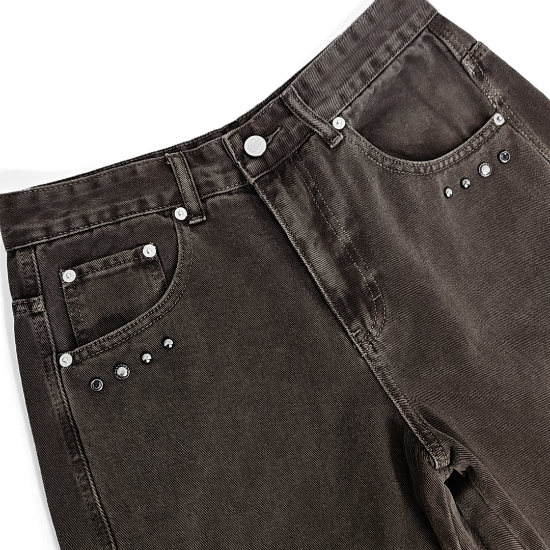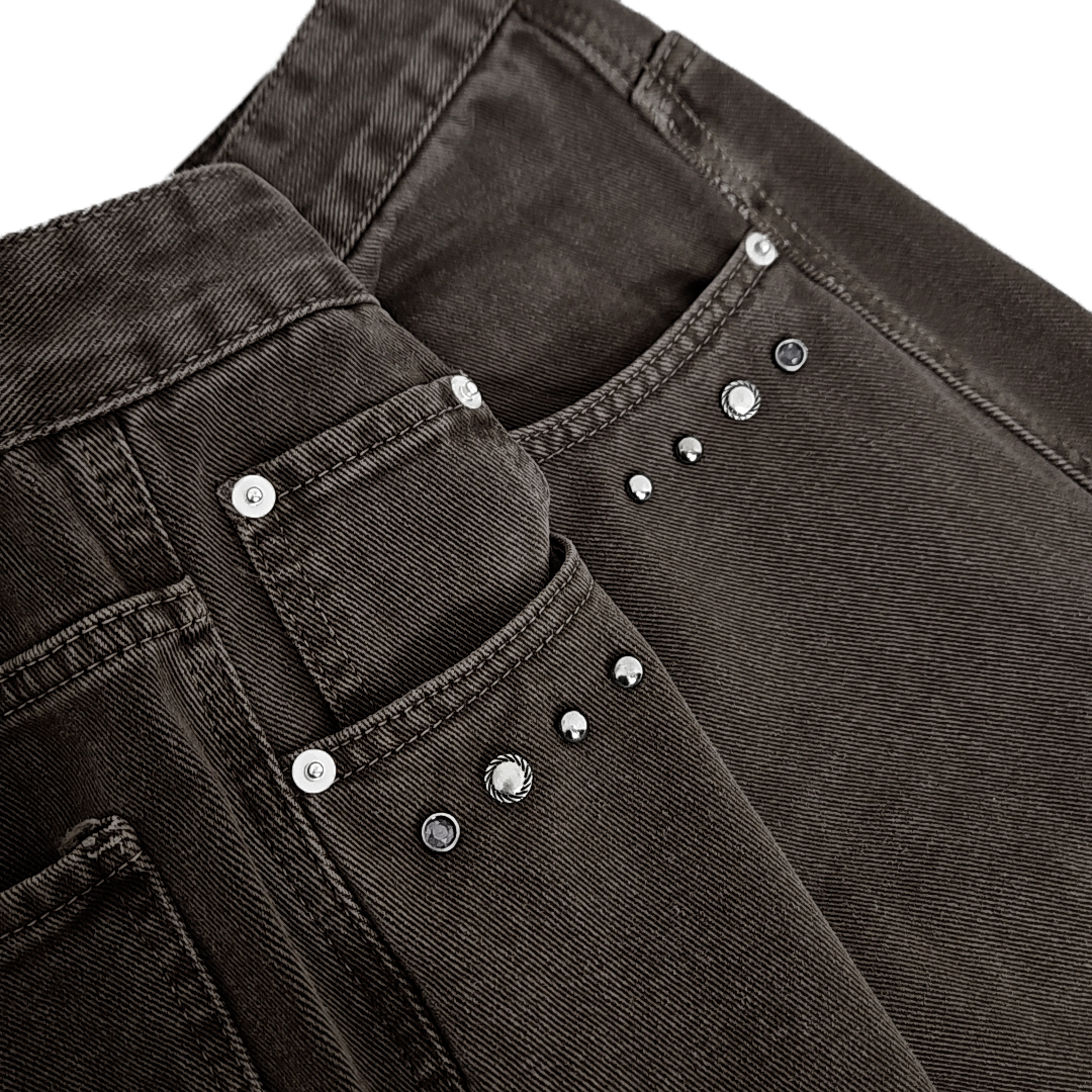 Kurdi western rivet curve cotton pants (ash brown)SALE