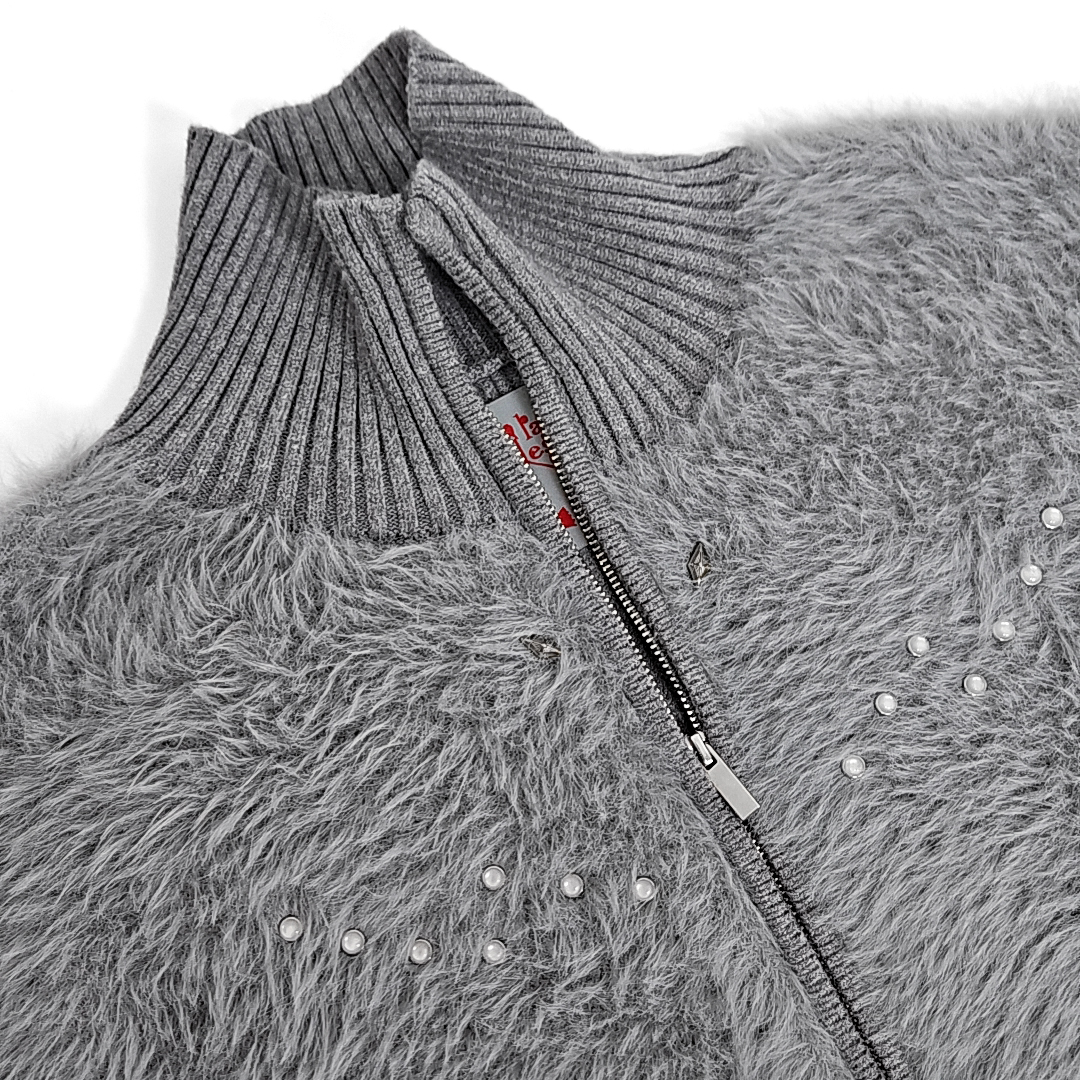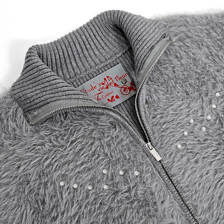 Yobinashi western rivet docking knit zipup (gray)SALE