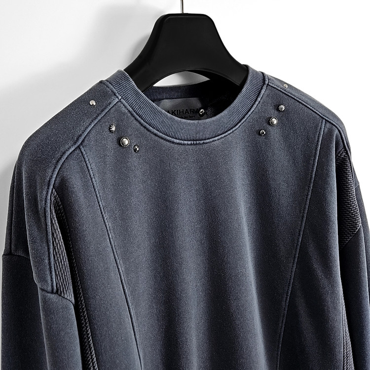 Kosyu western rivet panelled sweatshirts (dusty blue)SALE