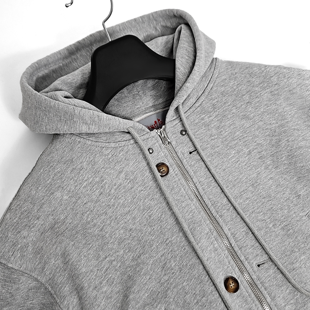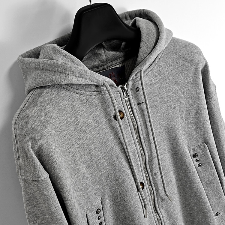 Mura-subi western rivet multi snap hoodie zipup (gray)SALE