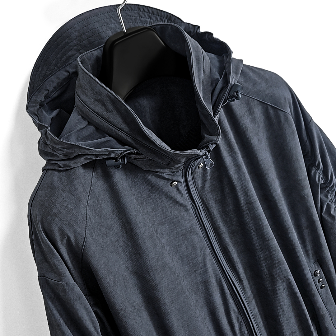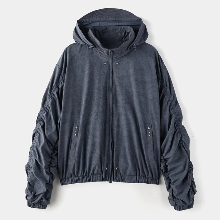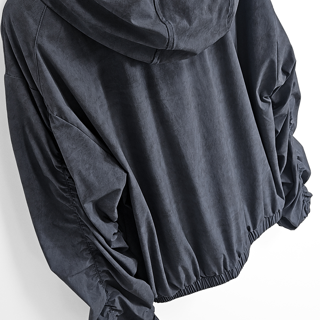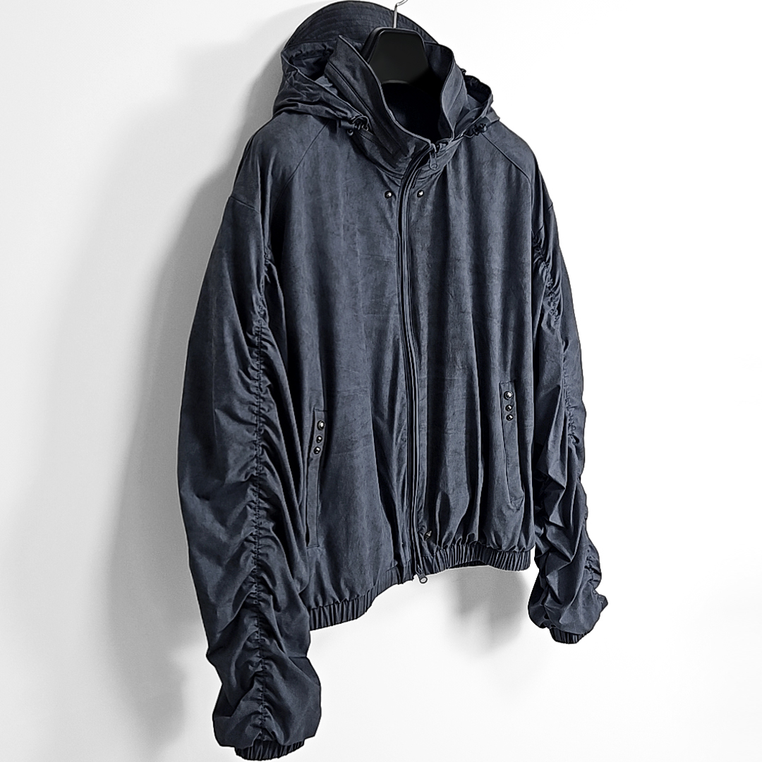 Yoketsu western rivet shirring hoodie windbreaker (ash blue)SALE